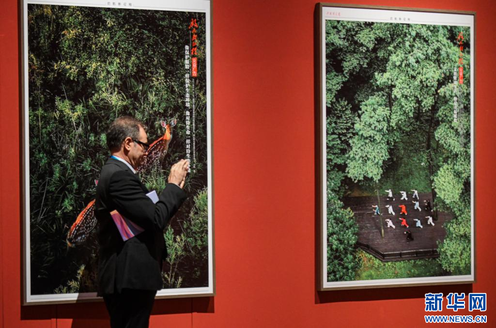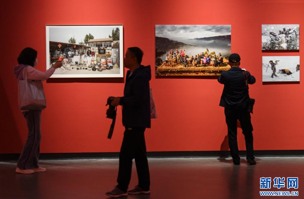 9月26日,在新疆美术馆,参观者在拍摄展出的摄影作品。新华社记者 王菲 摄