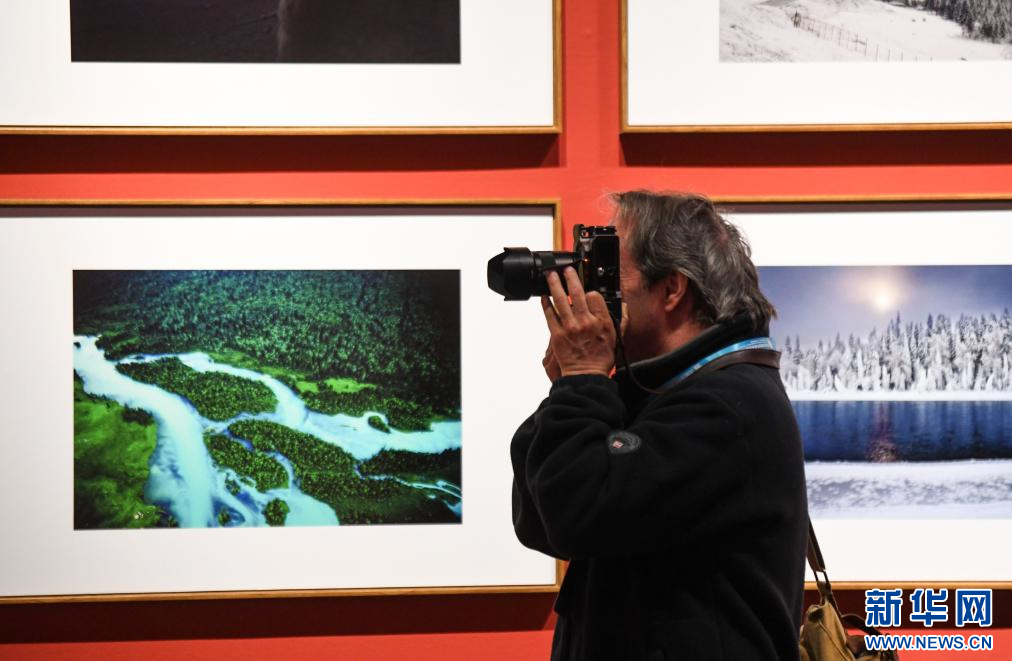 9月26日,在新疆美术馆,参观者在拍摄展出的摄影作品。新华社记者 王菲 摄pagebreak