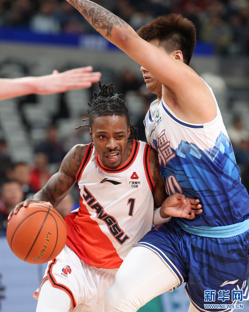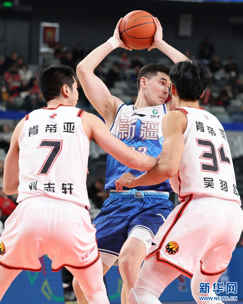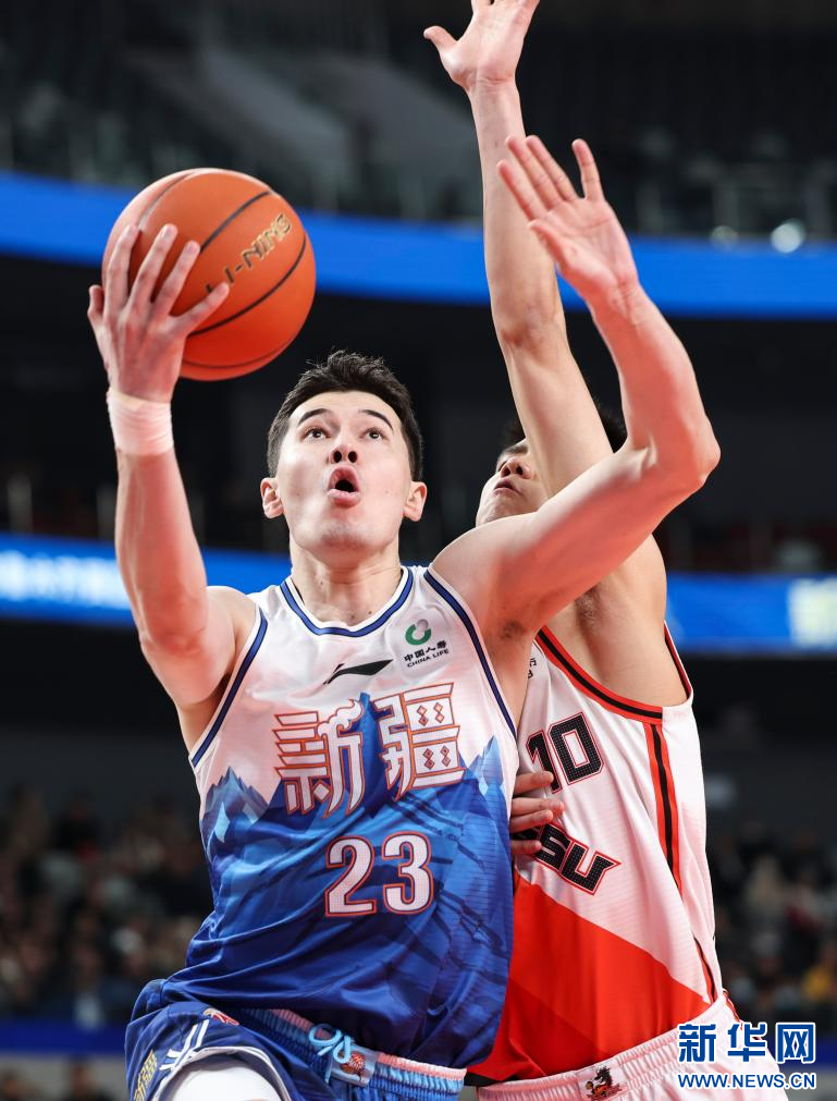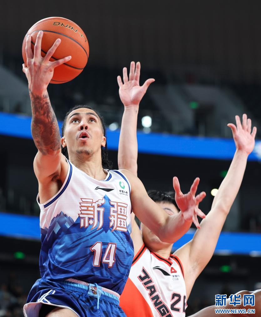 当日,在2023-2024赛季中国男子篮球职业联赛(CBA)常规赛第16轮比赛中,新疆伊力特队主场以93比89战胜江苏肯帝亚队。新华社记者 胡虎虎 摄pagebreak