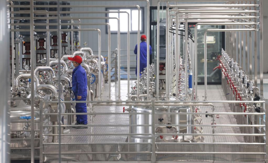 12月21日,在新疆生产建设兵团第六师五家渠市一家生物科技企业,工人在微生物发酵车间工作。新华社记者 胡虎虎 摄