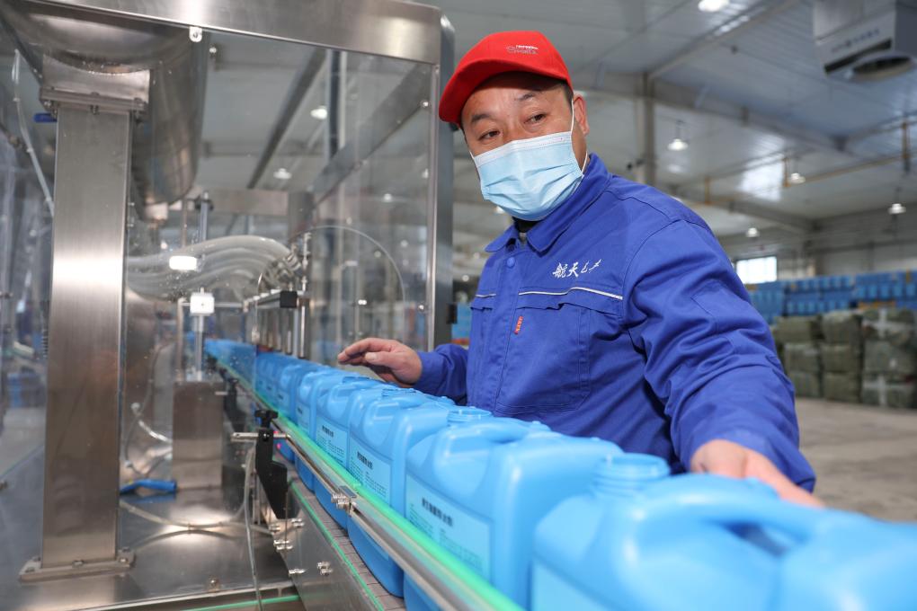 12月21日,在新疆生产建设兵团第六师五家渠市一家生物科技企业,工人在灌装车间工作。新华社记者 胡虎虎 摄
