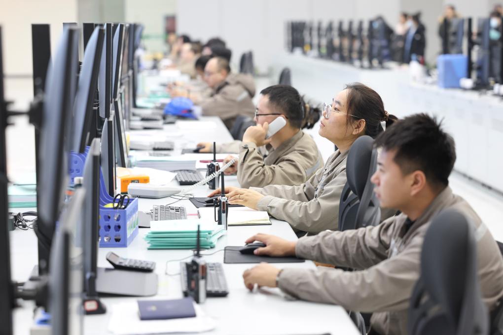 12月23日,在新疆生产建设兵团第七师胡杨河市一家新能源企业,员工在生产线控制中心工作。