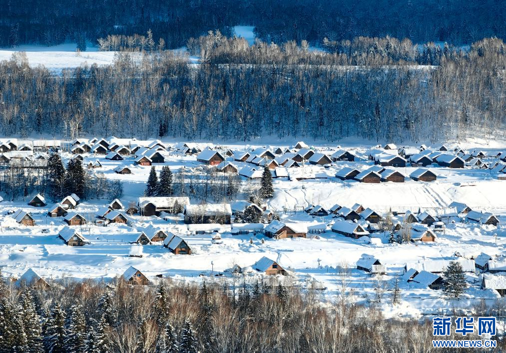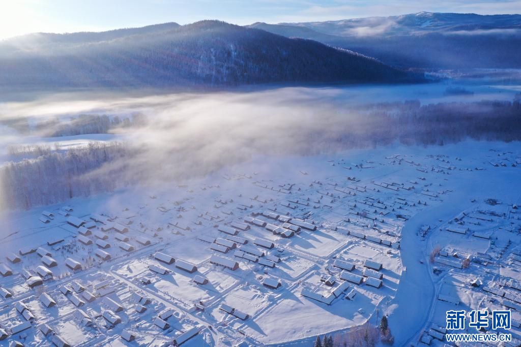 1月17日拍摄的新疆阿勒泰地区布尔津县禾木村(无人机照片)。