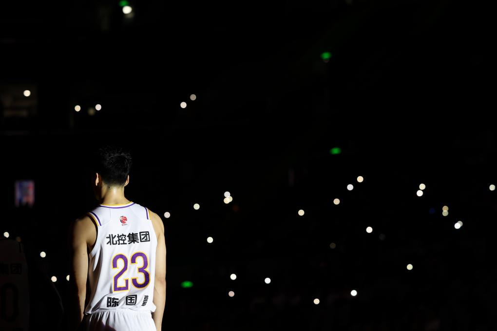 3月10日,北京控股队球员陈国豪在出场仪式上。新华社记者 胡虎虎 摄