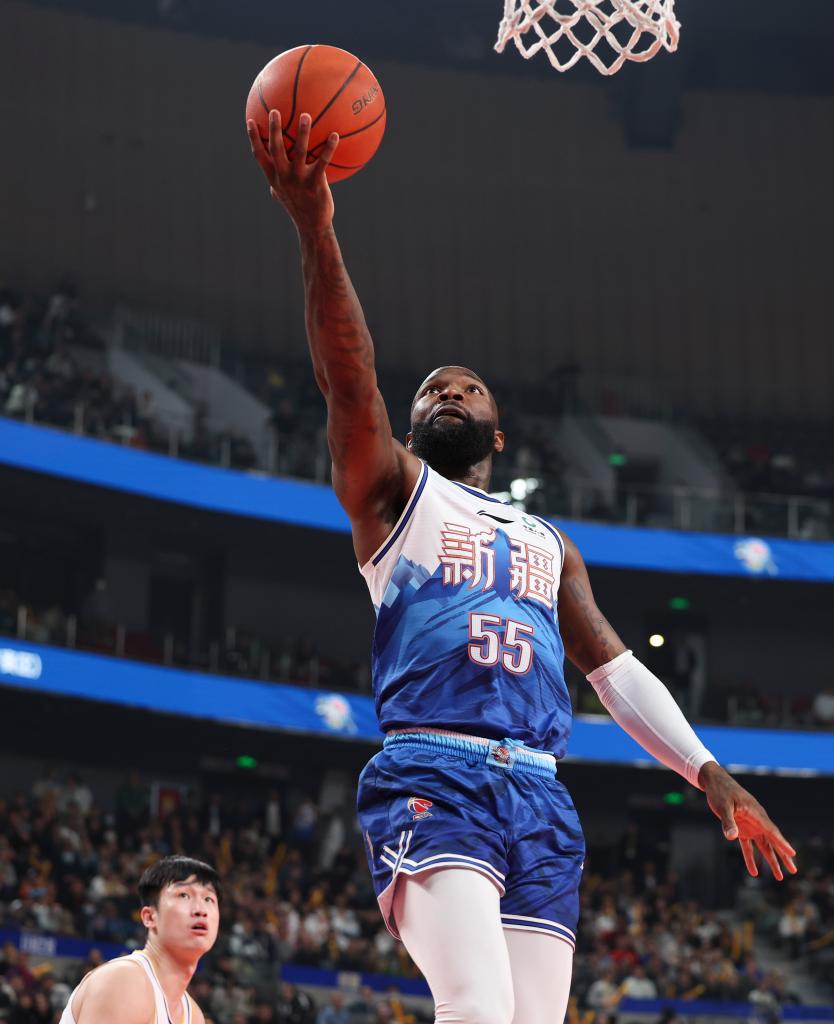 3月10日,新疆伊力特队球员琼斯在比赛中上篮。新华社记者 胡虎虎 摄