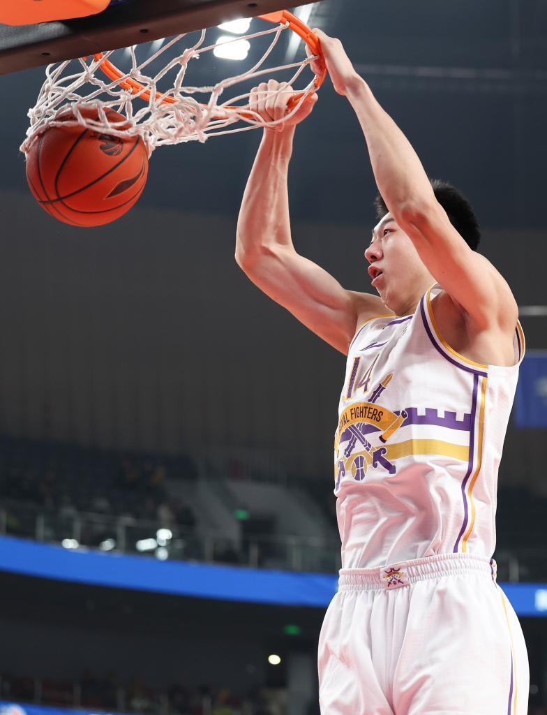 3月10日,北京控股队球员王少杰在比赛中扣篮。新华社记者 胡虎虎 摄