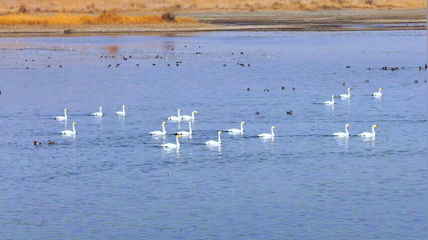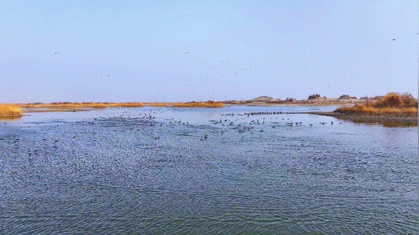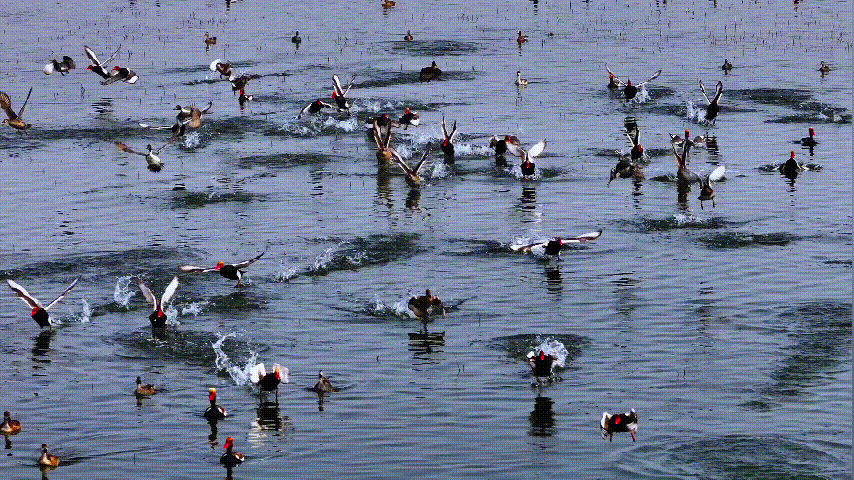 大批珍稀候鸟入境抵达这里,时而腾空盘旋,时而潜水觅食,为初春增添了无限生机。