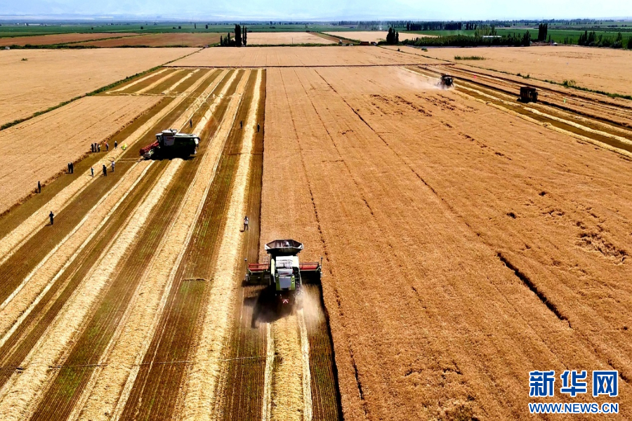 眼下,金色麦田穗飘香,新粮收割喜归仓。在新疆伊犁哈萨克自治州察布查尔锡伯自治县孙扎齐牛录镇阿帕尔村小麦种植基地,一望无际的成熟麦田“丰”景如画,让人心旷神怡。一台台联合收割机在麦浪间来回穿梭,金色的麦穗被卷进机仓,一趟趟满仓收割的麦粒直接倒入运粮车厢,粮农脸上洋溢着丰收的喜悦,田间地头一派繁忙的夏收景象。(华岩明)
