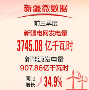 前三季度新疆电网新能源发电量同比增长34.9%-新华网
