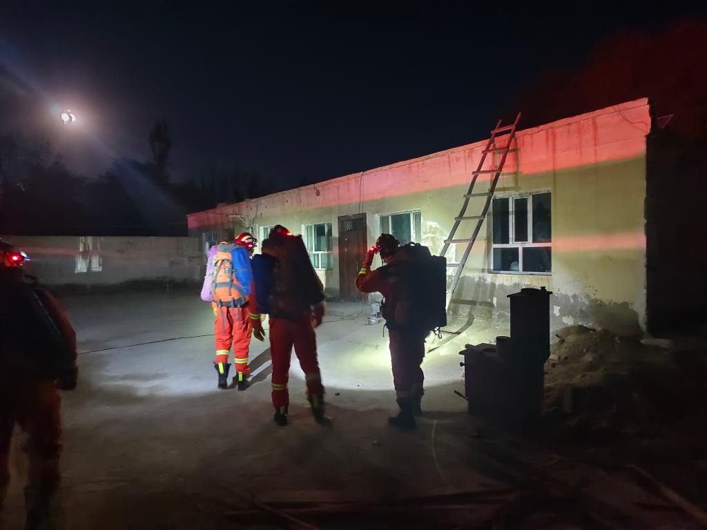 10月17日晨,阿合奇县消防救援大队交通路消防救援站消防员正在入户排查情况。新华社发(肉孜买买提·艾山吐尔 摄)