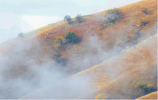 进入10月底,位于新疆新源县吐尔根乡的3万多亩那拉提杏花谷秋色正浓,金秋的色彩为杏花谷披上一件华丽的衣裳。放眼望去,山峦起伏,那满山满谷的野杏树,经过风雕霜染,已是层林尽染,绚丽多姿。10月29日,五彩杏花谷与一场不经意的秋雨相逢邂逅,由于气温的变化,山谷里云雾缭绕,时而奔涌、时而沉静,牛羊在其中悠闲觅食,宛如世外桃源、童话仙境,令人赏心悦目、心旷神怡,怦然心动!