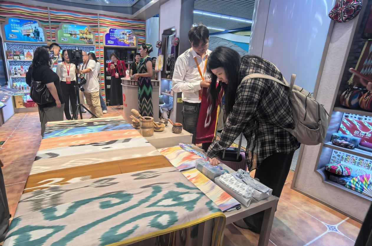 游客在“和田地区北京地铁城市客厅”购买商品。