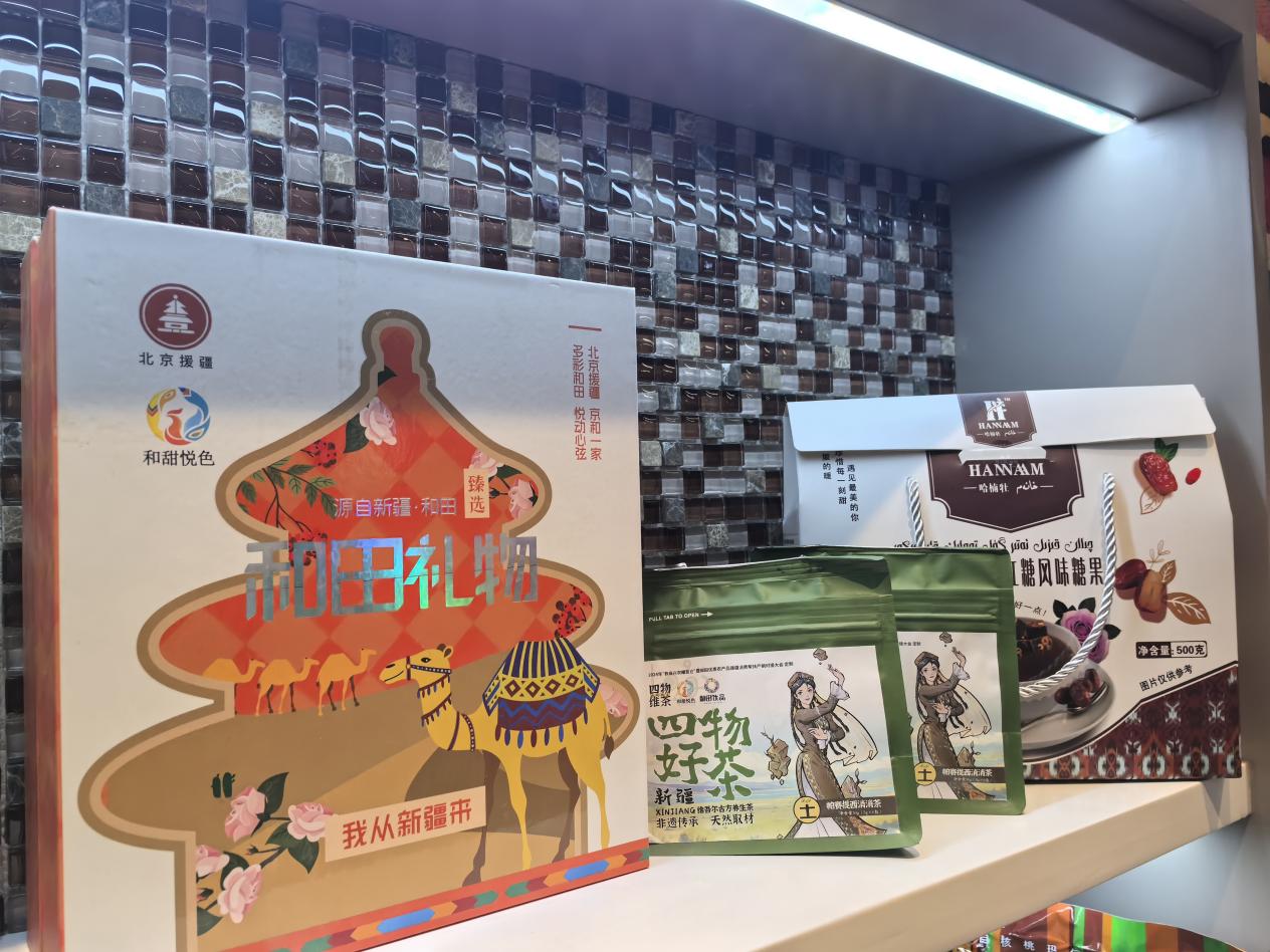 “和田地区北京地铁城市客厅”展示的和田特色产品。