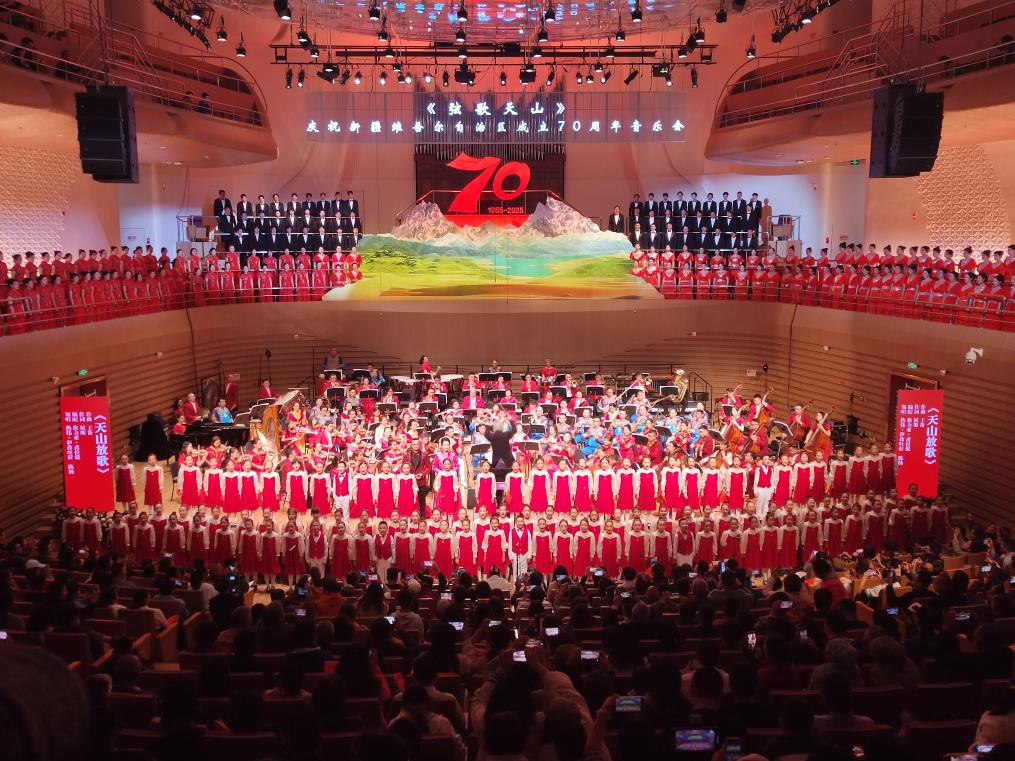 10月7日,演员在音乐会现场表演《天山放歌》。新华社记者 王菲 摄