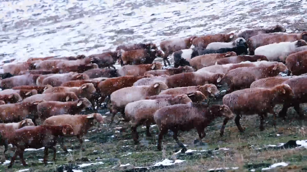 近日,在新疆伊犁哈萨克自治州特克斯县,一场初雪为阿克塔斯草原披上浪漫外衣,勾勒出令人心动的自然景致。
