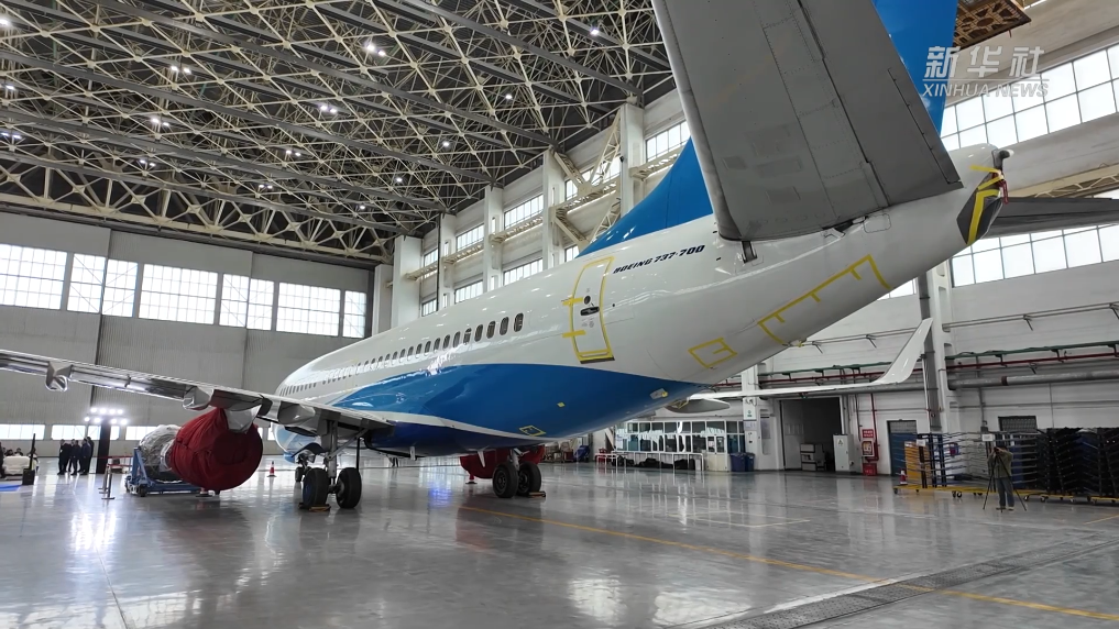 在南航工程技术分公司新疆基地机库,一架波音737-700飞机正准备进行拆解作业,该飞机至今已运行20年,进入了民航客机生命周期的末期。