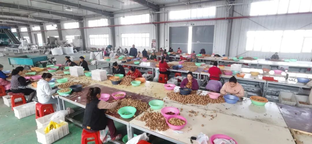 据了解,新疆果艺家商贸有限公司成立于2022年5月,公司规模达1万平方米,是一家集收购、加工、销售为一体的农产品加工企业。 走进公司可以看到,农民陆陆续续前来售卖自家核桃。加工车间内,机器轰鸣,80多名员工正在分拣、筛选、烘干、称重、包装。据了解,公司每天的生产量在10吨到15吨,公司成立至今,总销售额已达5000万元。