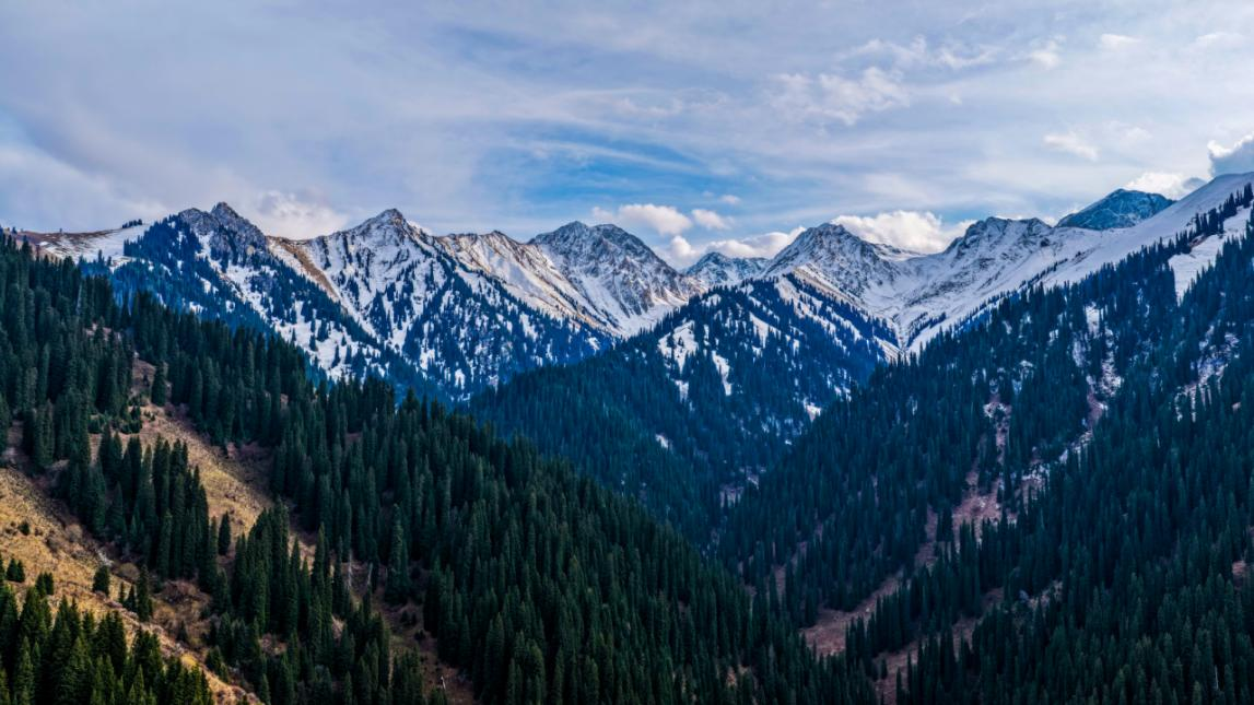 秋阳漫过新源南山的脊线时,山顶的雪便成了最清透的留白。那片皑皑白雪像给群山戴上了顶蓬松的银冠。