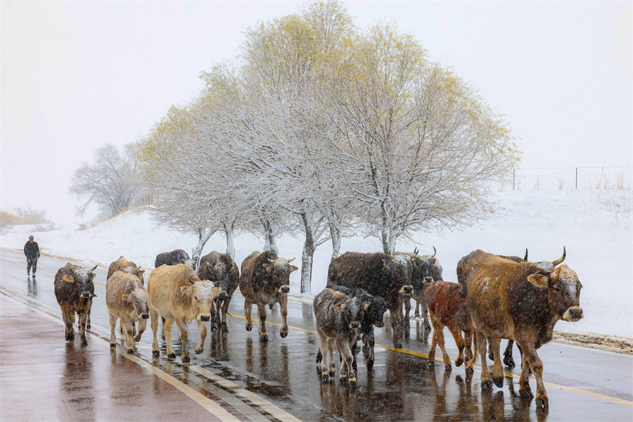 这场初雪让那拉提的秋与冬浪漫相拥,既有初雪的纯净清透,又有残秋的斑斓余韵,冷暖交织、色墨相间,把季节更替晕染成一首可感可触的田园牧歌,尽显边塞风光的独特韵味。(张文庭 罗韩军)