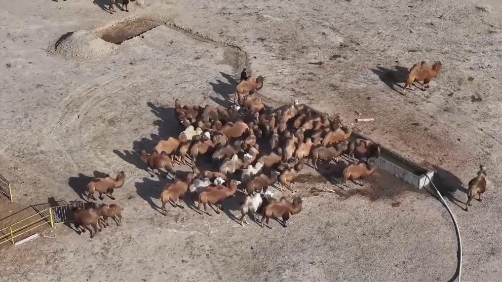 初冬时节,新疆巴音郭楞蒙古自治州的戈壁滩上迎来了骆驼分群的繁忙时期。