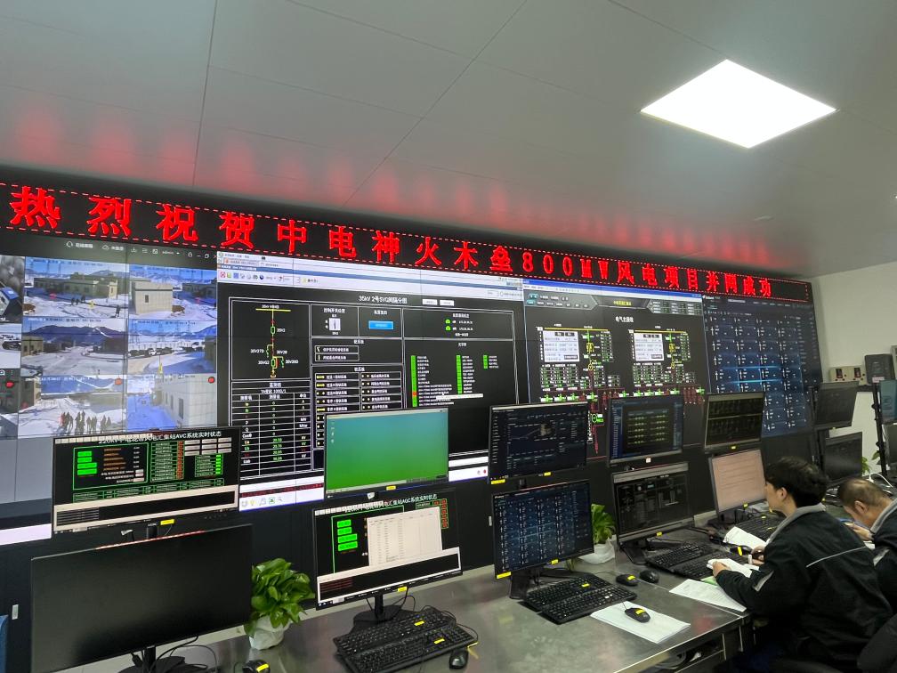 中电神火木垒自备绿电替代风电80万千瓦项目并网现场。新华社记者杨林 摄