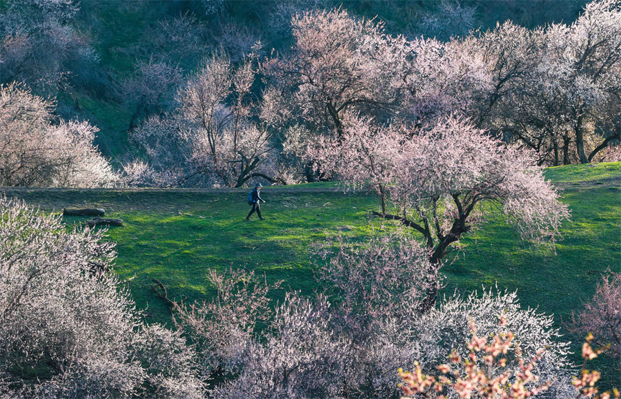 春风送暖,新疆新源县那拉提杏花谷万亩野杏林,迎来踏青赏花热潮。原始野杏林绵延整个山谷,花香沁人心脾。各地游客徜徉花间,或漫步轻嗅芬芳,或策马穿行花海,定格绿草与繁花同框的绝美瞬间。微风拂过,花瓣纷飞,游人沉醉于自然野趣,尽享春日限定浪漫。