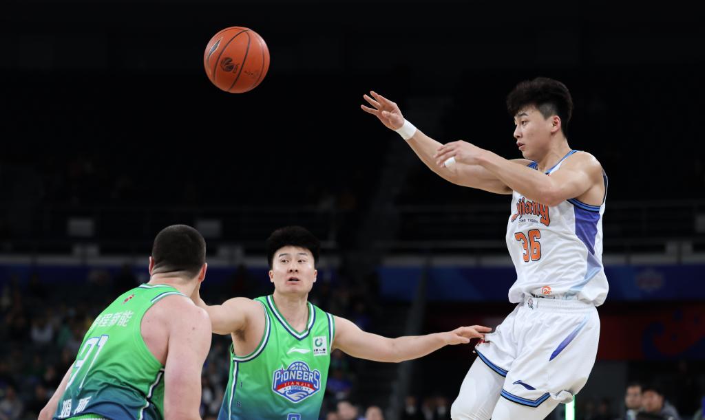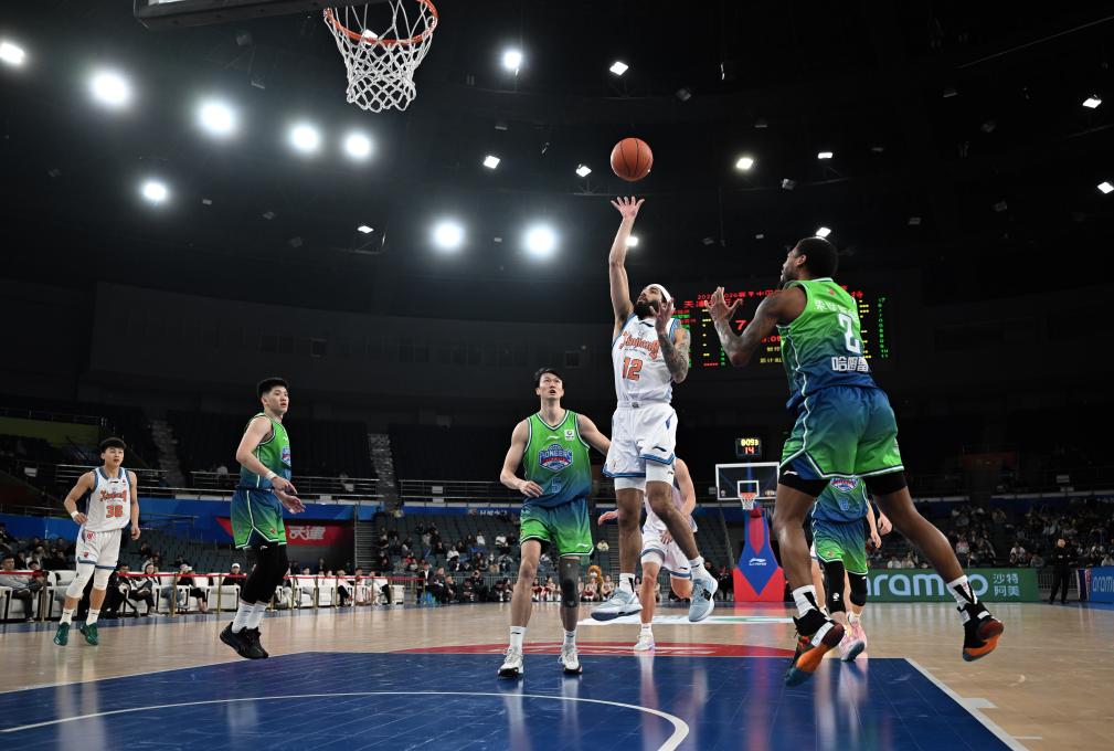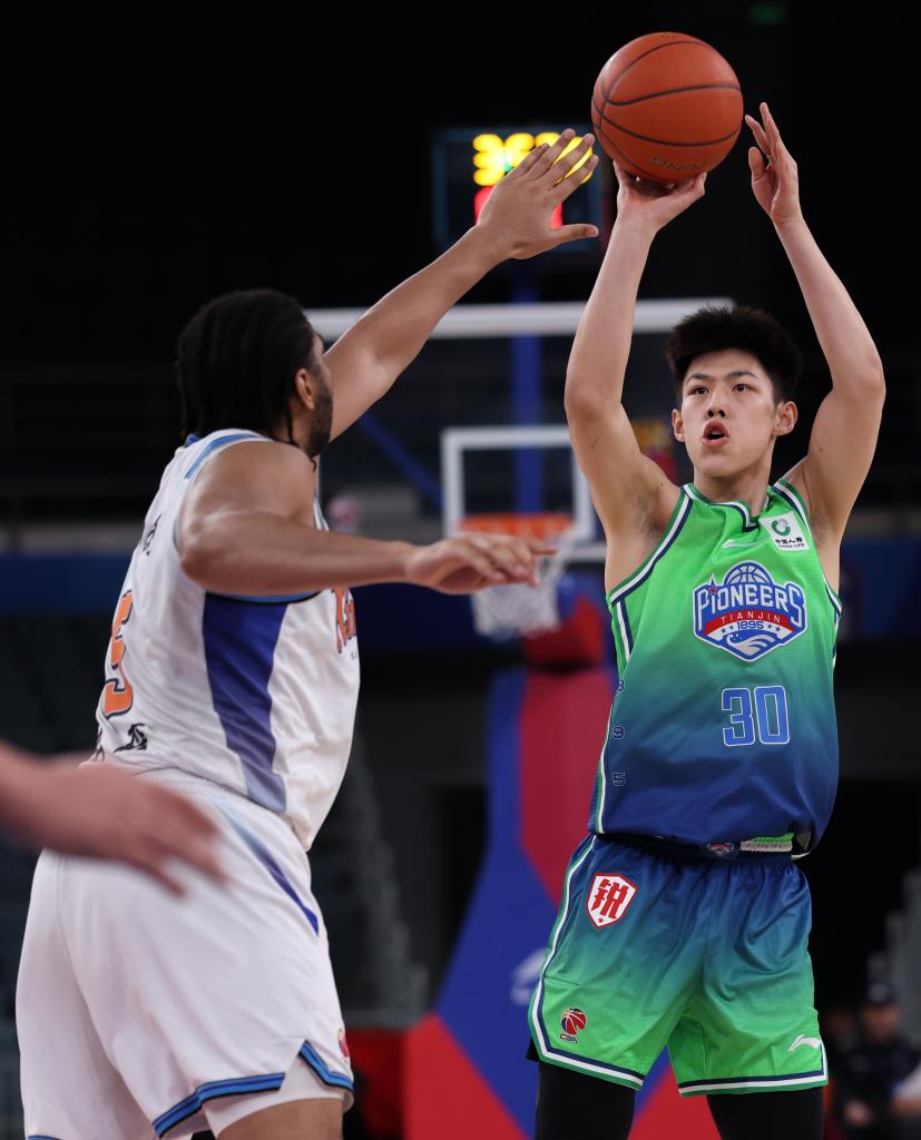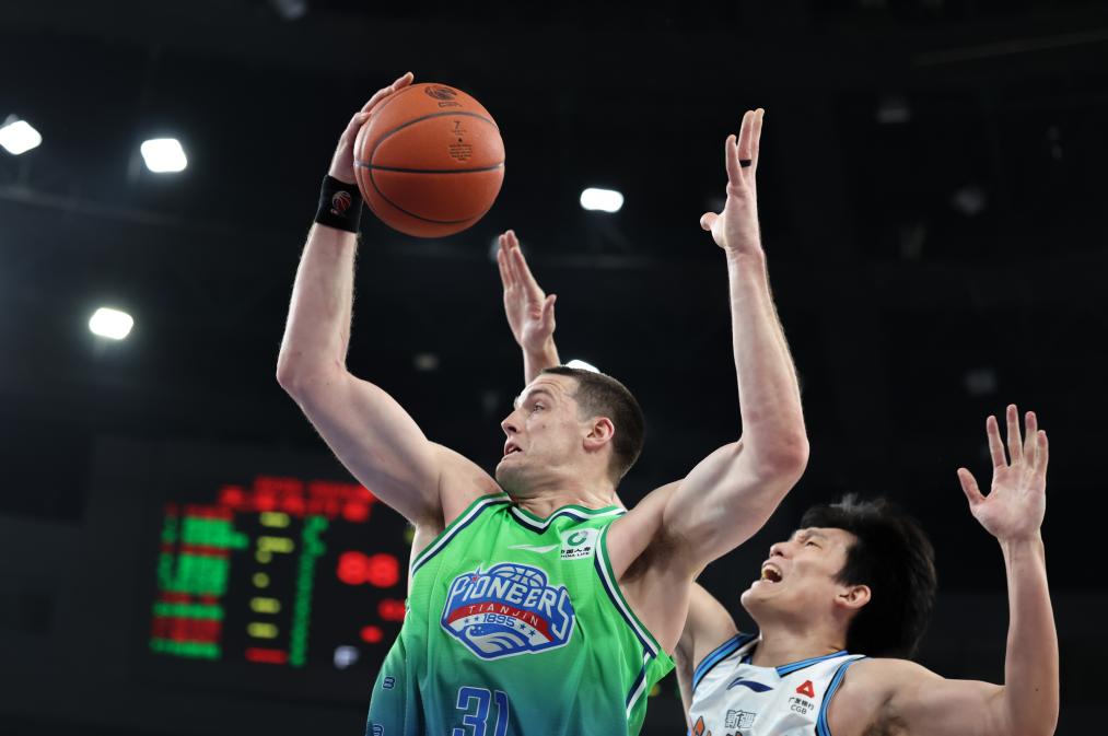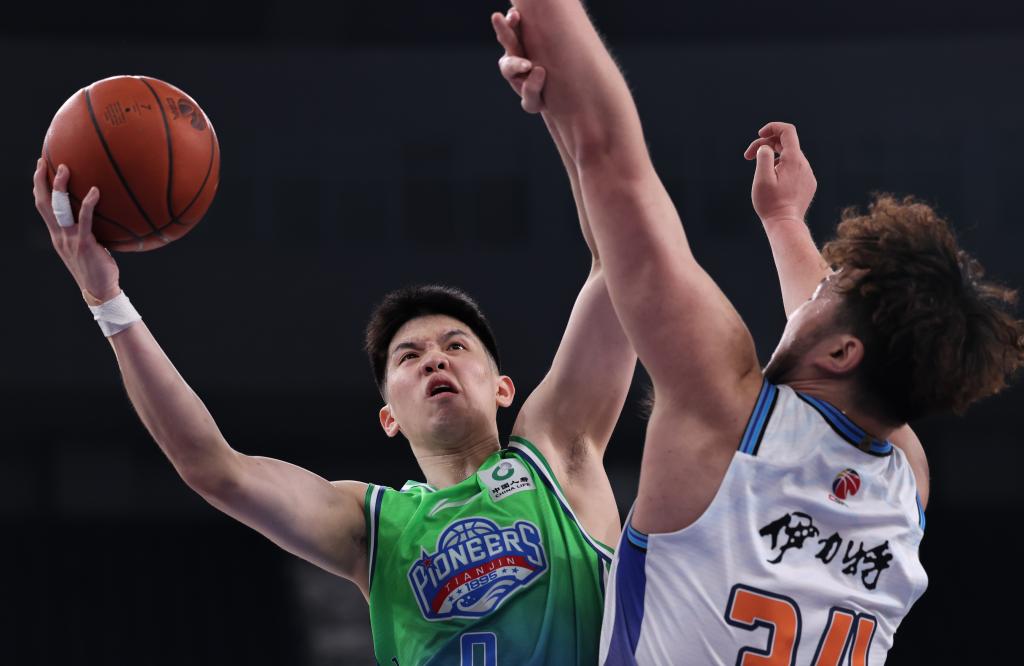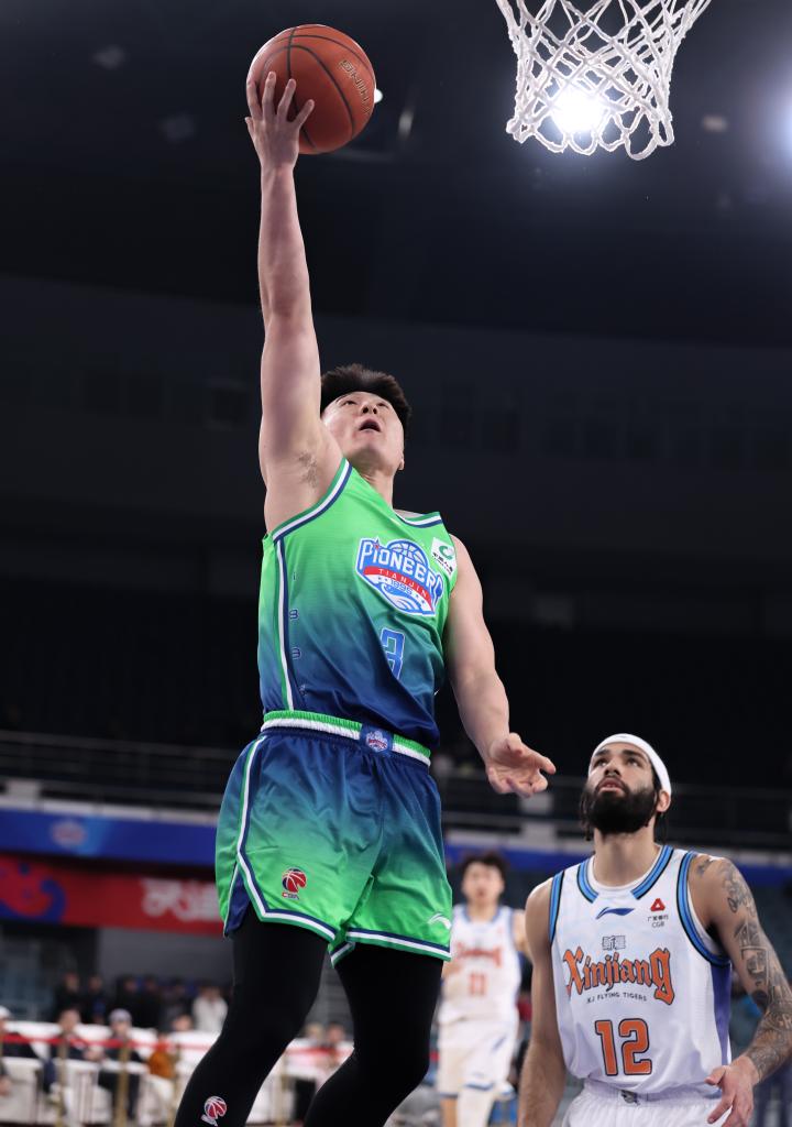4月13日,在2025-2026赛季中国男子篮球职业联赛(CBA)常规赛第38轮比赛中,天津先行者队主场100比98战胜新疆伊力特队。