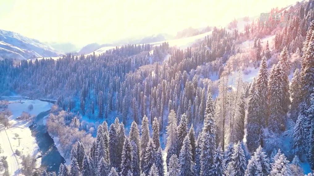 新疆库尔德宁景区:雪覆群山 云杉静立