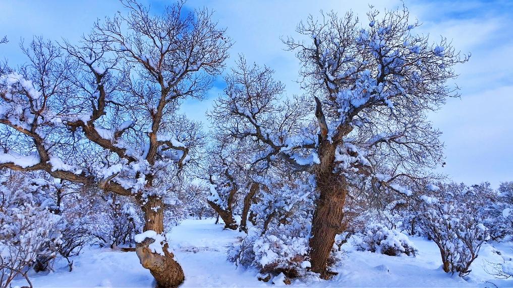 千城胜景|新疆乌苏市:雪落胡杨虬枝劲
