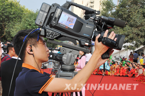 第二十三届葡萄节开幕式新华网、兵团网现场直播的工作人员