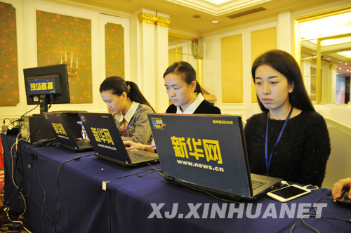 工作人员正在为“新华社新疆发布”上线仪式做准备