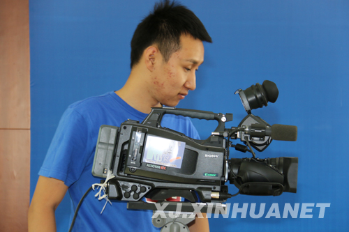 工作人员正在进行视频直播