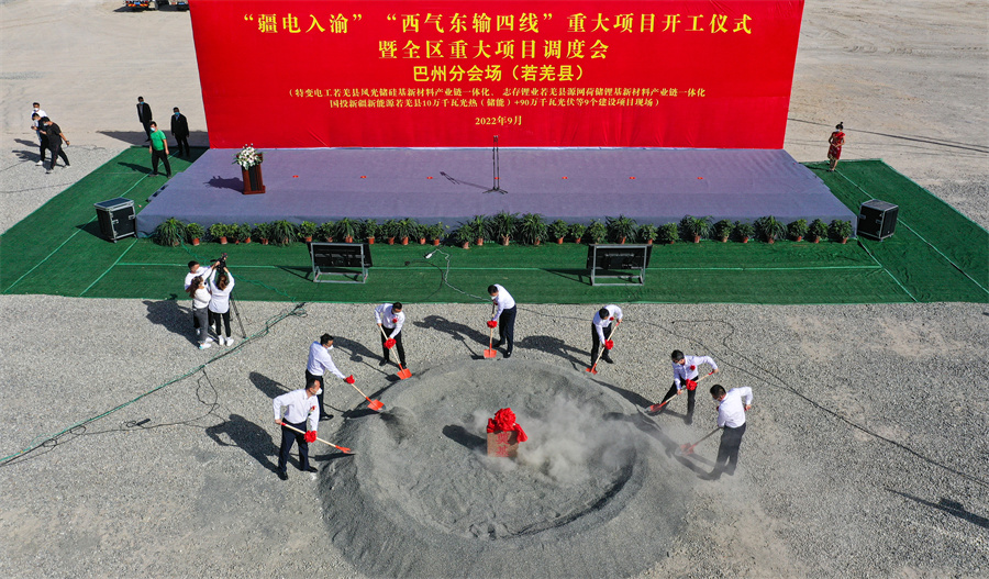 当天开工的项目中,特变电工若羌县风光储硅基新材料产业链一体化项目,将在若羌罗布庄、若羌河、米兰一带,规划建设风、光、储一体化新能源发电示范基地,总容量500万千瓦。项目建成后,将构建从原材料到电站终端的“以绿色能源生产绿色能源”循环产业链发展新模式,打造巴州若羌“绿色能源生产区、绿色能源转换区、绿色能源消纳区”的绿色能源基地,助力巴州构建以新能源和战略性新兴产业为支撑的现代能源经济体系。