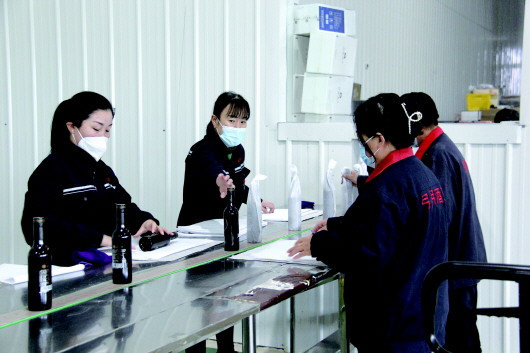 1月28日,在四师可克达拉市六十七团弓月酒庄生产车间,工人们正加紧生产新一批订单产品。