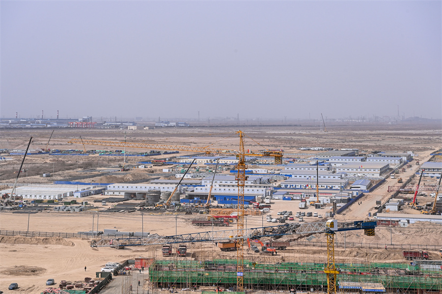 合盛硅业在乌鲁木齐甘泉堡经济技术开发区投资300多亿元建设的硅基新材料产业一体化项目正抓紧建设(周广科 摄)