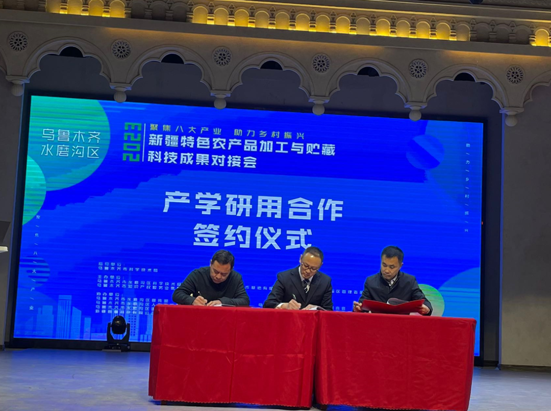 对接会上,新疆银泰天下农业投资有限公司与新疆大学生命科学与技术学院、乌鲁木齐申新科技合作基地有限公司三方达成共识,共同签署了科技成果转移转化合作协议,三方通过“产学研用”合作,助推“新疆绿色有机果蔬深加工关键技术开发及产业化项目”的实施,项目执行周期3年,持续达成合作金额1000万元,实现3-5项新成果新技术的转化示范。