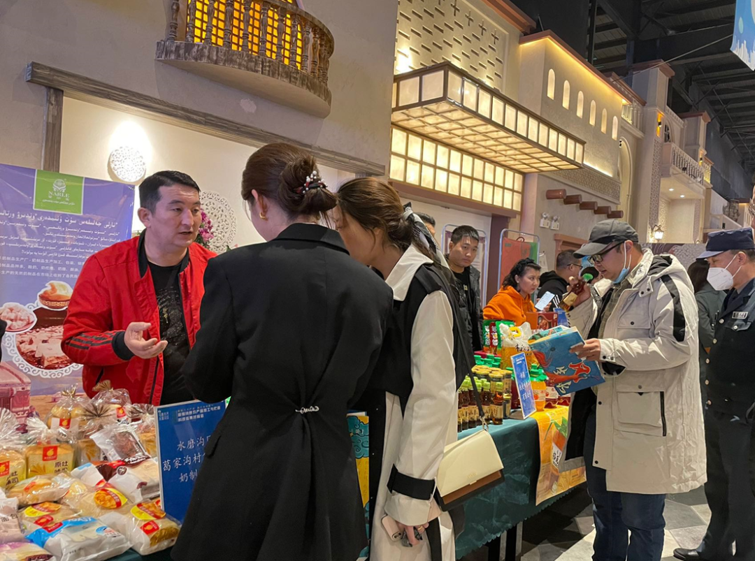 当日,在推介会展示区,一排排新疆特色农产品琳琅满目,有羊排烤包子、奶皮子、辣皮子囊、格瓦斯、石榴汁等,吸引了众多游客驻足品尝、购买。