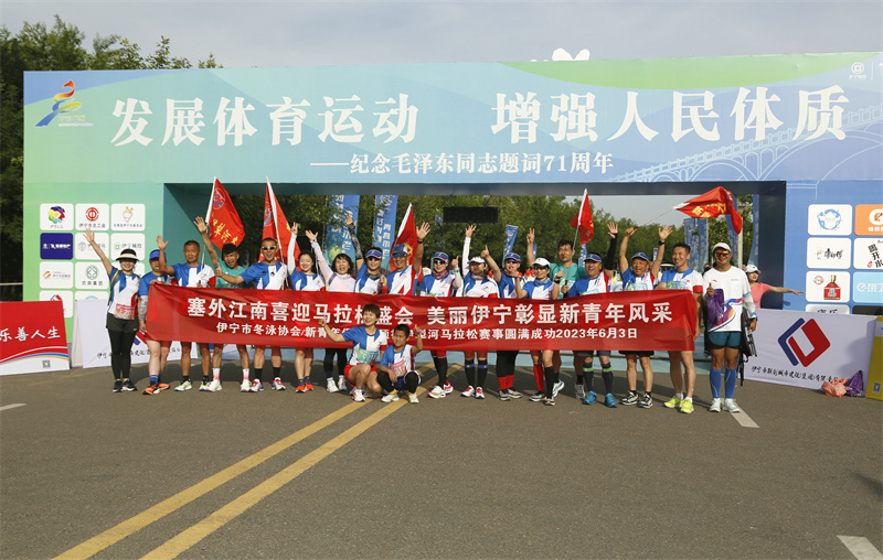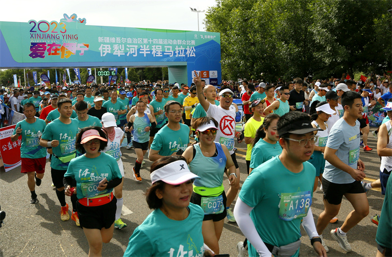 6月3日上午,新疆维吾尔自治区第十四届运动会群众比赛“爱在伊宁”伊犁河半程马拉松比赛在伊宁市伊犁河景区七彩广场举行。