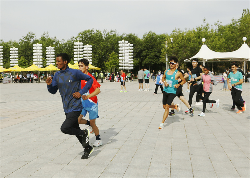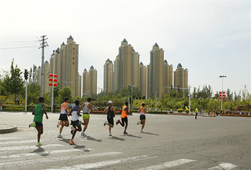 本次半程马拉松比赛共有1086名选手参加。参加此次大赛的不仅有疆内选手,还吸引了45名来自上海、北京、西藏、江苏等地的国内选手及6名来自埃塞俄比亚和肯尼亚的国际选手参加。(摄影 史恭敬)