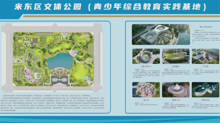 按照规划,米东区文体公园建成后,将打造成以青少年综合教育实践基地为核心,以市民文化体育体验、城市特色展示为带动,集观光旅游、体育休闲、健身、科普教育、素质拓展、科学实践、研学体验为一体的综合型城市公园。