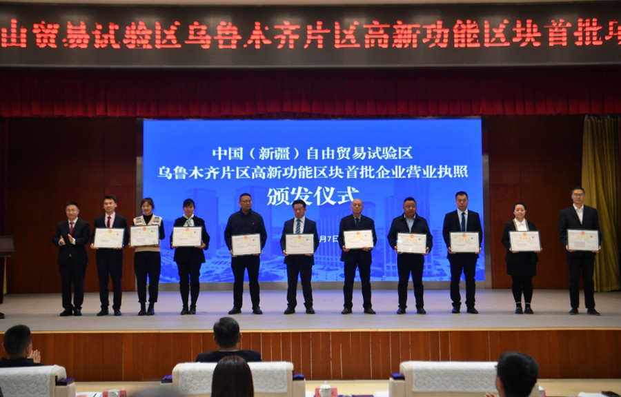 在中国(新疆)自由贸易试验区乌鲁木齐片区高新功能区块首批项目集中签约仪式上,10个重点招商引资项目、10家政银合作金融机构集中签约,10家首批入驻高新功能区块的企业现场颁发营业执照,标志着乌鲁木齐高新区(新市区)在推进中国(新疆)自由贸易试验区乌鲁木齐片区建设中迈出了实质性的第一步。