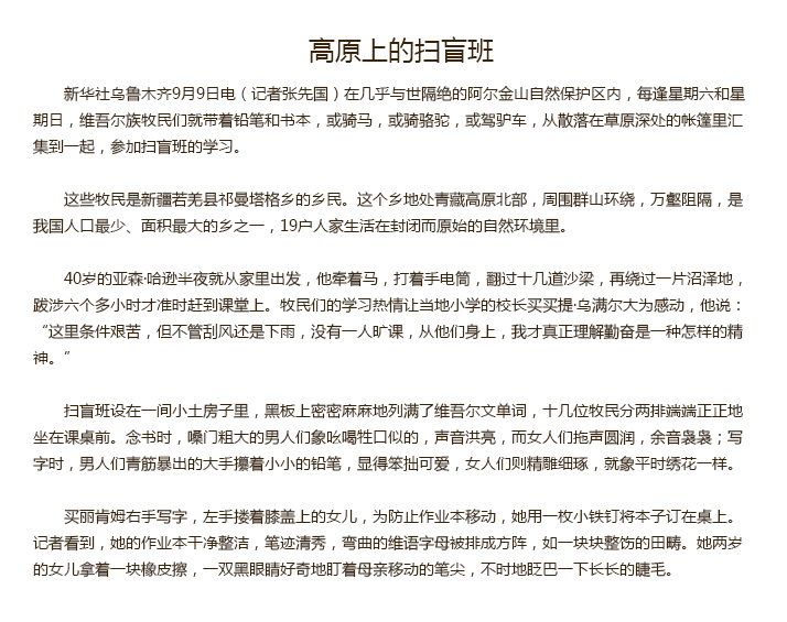 高原上的扫盲班