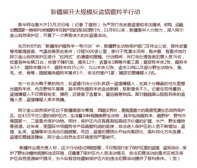 新疆展开大规模反盗猎藏羚羊行动