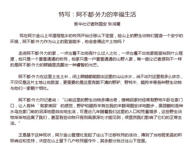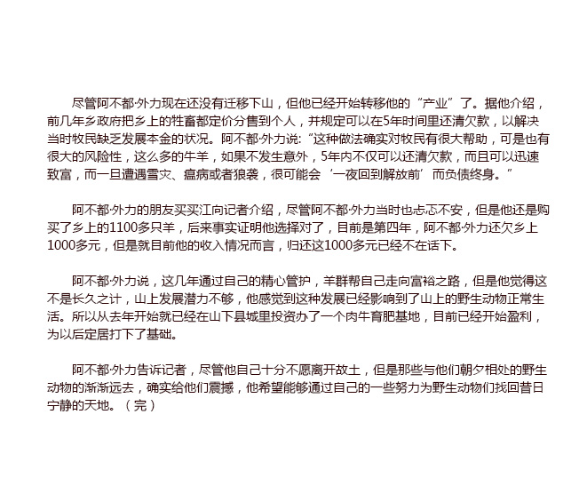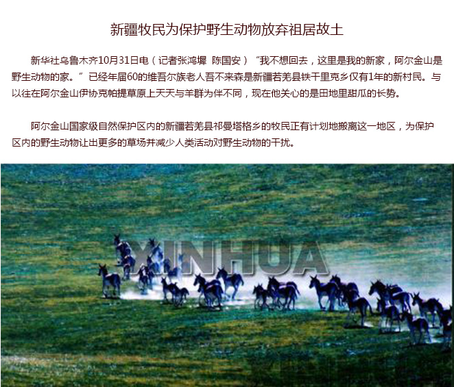 新疆牧民为保护野生动物放弃祖居故土