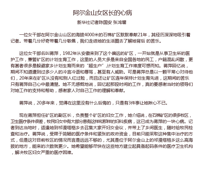 阿尔金山女区长的心病