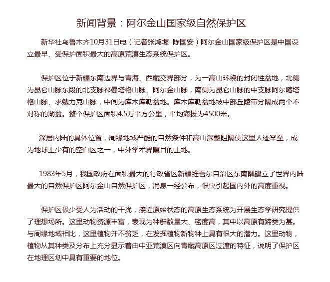 新闻背景:阿尔金山国家级自然保护区