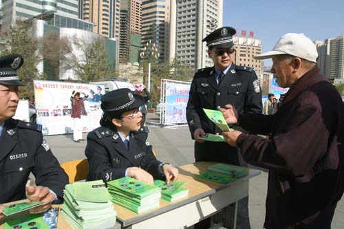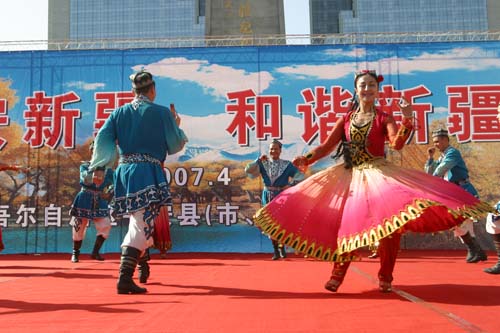 乌鲁木齐人民广场上举办了各种宣传活动