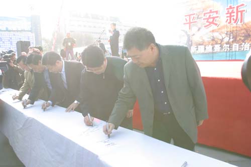 自治区领导在万人签名横幅上签名