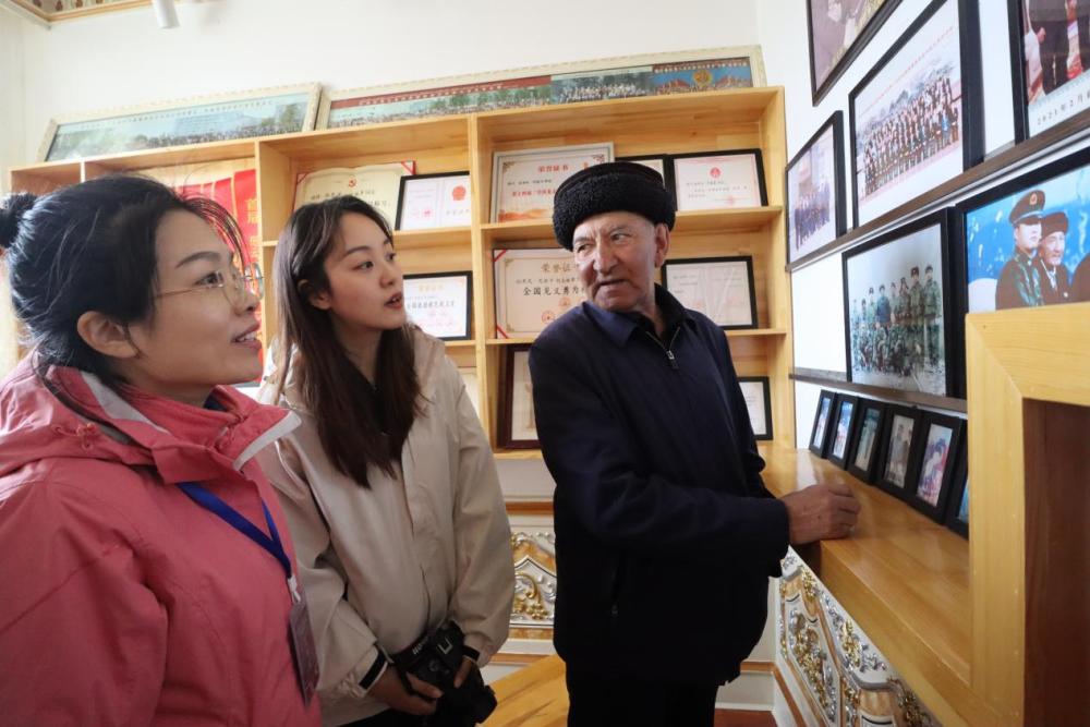 画像期间,巴依卡老人向大家介绍他家中的陈列,有20岁、40岁巡边的照片,有宣誓入党的留影,还有和家人在天安门广场前的合照……提起儿子拉齐尼,老人说:“我的家是五十六个民族的家,五十六个民族的孩子都是我的孩子,我想培养更多孩子保卫国家。”