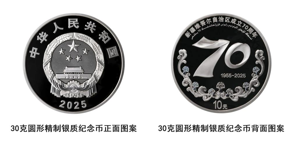 记者9月16日从中国人民银行获悉,中国人民银行定于9月19日发行新疆维吾尔自治区成立70周年金银纪念币一套。该套金银纪念币共2枚,其中金质纪念币1枚,银质纪念币1枚,均为中华人民共和国法定货币。